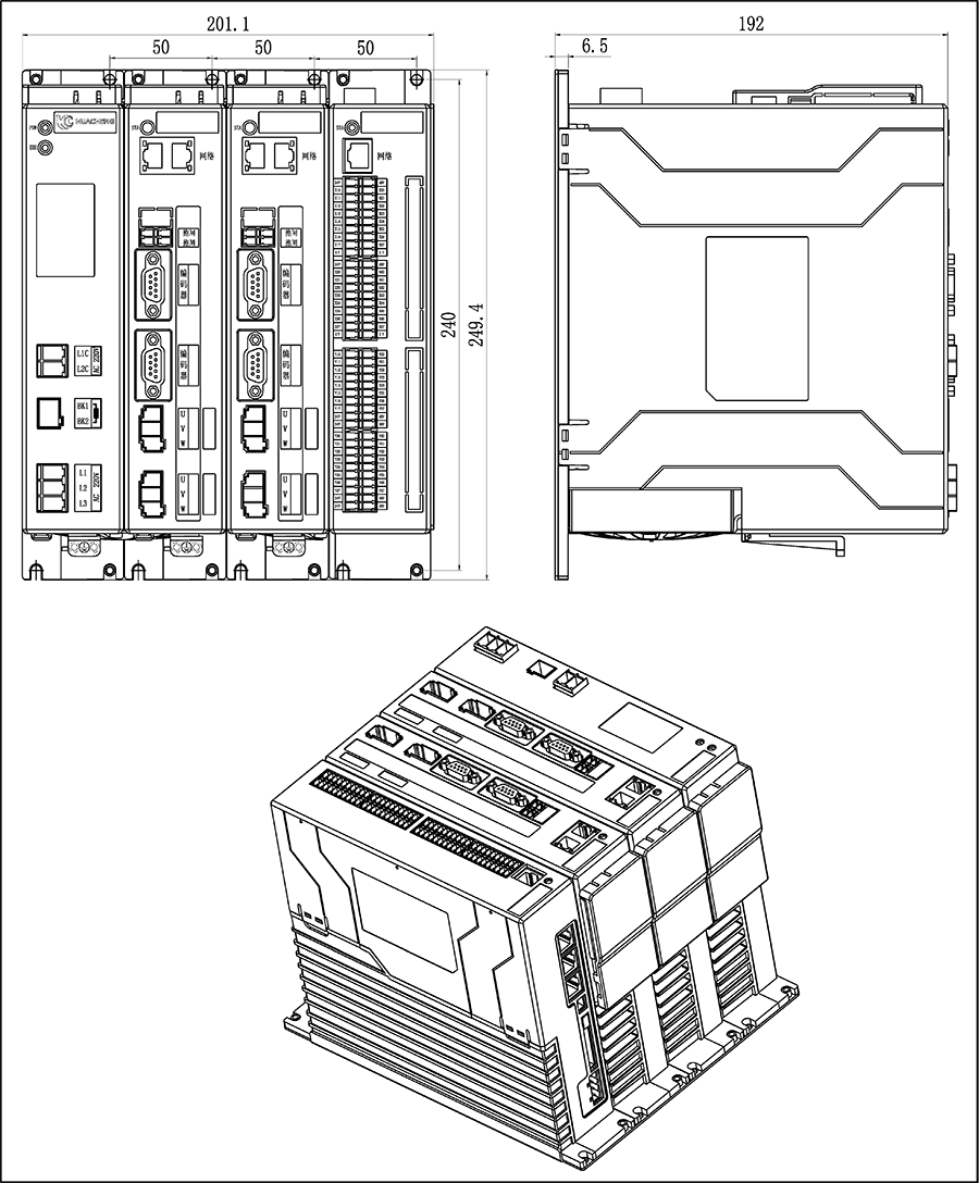 3)省略号处单元模块相同,系统轴数可选择2轴、3轴、4轴、5轴、6轴、7轴、8轴。端口连接方式相同。