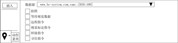 2、远程指令:选择如下图所示数据源,插入指令。运行时,系统将处于等待状态,直到接收到远程指令,执行完一条远程指令后程序将继续执行。否则将一直处于等待状态下。
