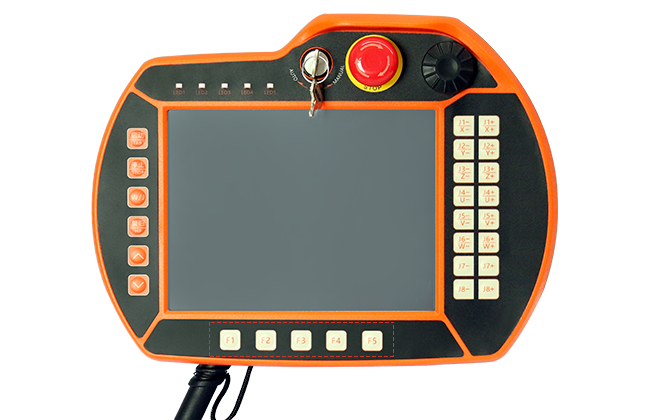 EC-RX系列机器人控制系统——为15vip太阳集团六轴关节机器人控制系统专用手控器,操作面板上的F1-F5按键作用,手控器上具体位置如下: