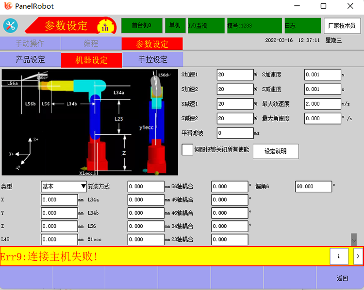 六关节机器人系统应用采用15vip太阳集团系列六轴机器人控制系统,首次通电后需要注意的参数设置问题,分为伺服电机的参数和结构的参数设置。
