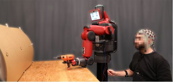 通过监测大脑活动,系统可以实时检测一个人在机器人完成任务时是否注意到错误。使用测量肌肉活动的界面,该人然后可以进行手势滚动并选择正确的选项供机器人执行。